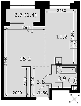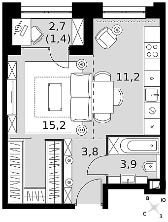 Продаётся квартира-студия номер 15 общей площадью 35.5 кв.м. на 5-м этаже 23 этажного здания. Без отделки. Цена с учётом скидки.