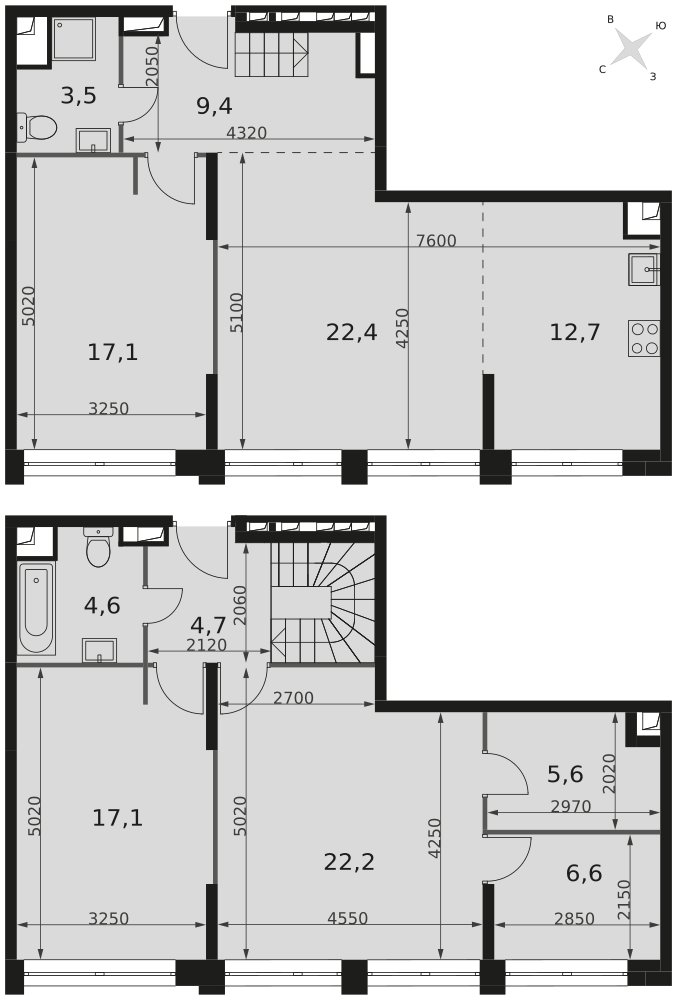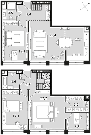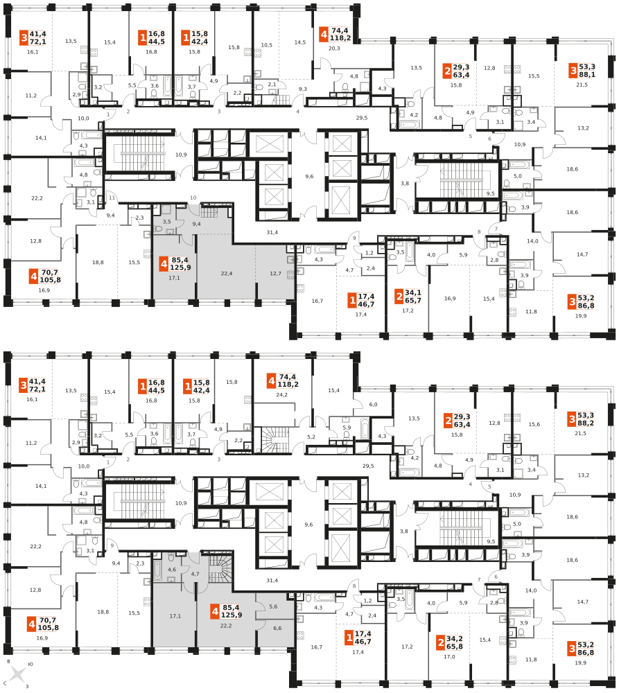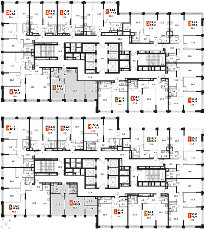 Продаётся 5-к квартира номер 486 общей площадью 125.9 кв.м. на 42-м этаже 43 этажного здания. Без отделки. Цена с учётом скидки.