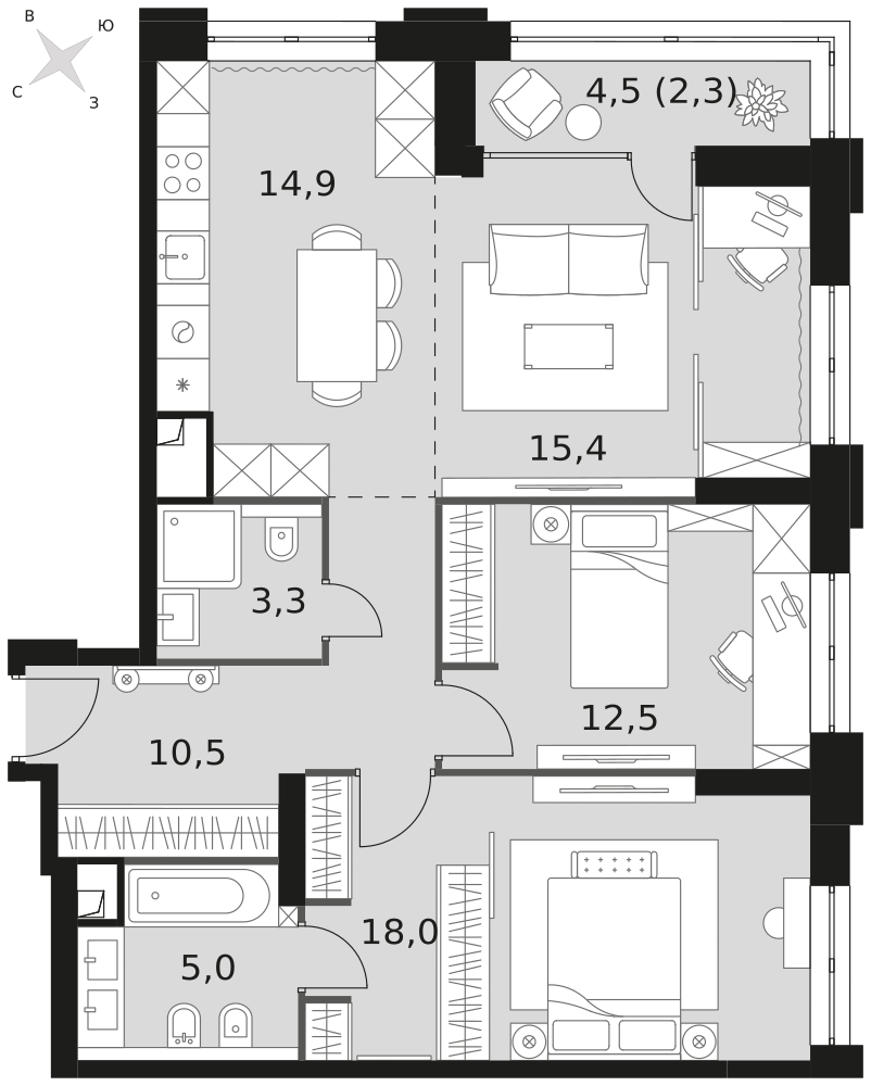 - Мастер-зона с санузлом. Уют и комфорт в одном пространстве.