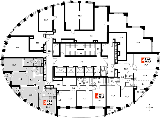 Продаётся 3-к квартира номер 423 общей площадью 93.2 кв.м. на 23-м этаже 44 этажного здания. Отделка Whitebox. Цена с учётом скидки.