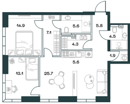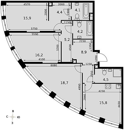 - Мастер-зона с санузлом и гардеробной. Всё для вашего комфорта и удобства, включая личный санузел и гардероб.