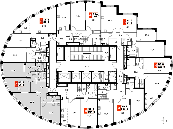 Продаётся 3-к квартира номер 490 общей площадью 97.3 кв.м. на 33-м этаже 44 этажного здания. Без отделки. Цена с учётом скидки.