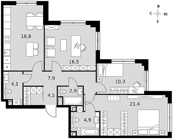 - Мастер-зона с санузлом. Уют и комфорт в одном пространстве.