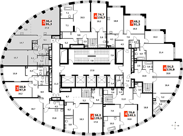 Продаётся 3-к квартира номер 515 общей площадью 86.1 кв.м. на 38-м этаже 44 этажного здания. Без отделки. Цена с учётом скидки.