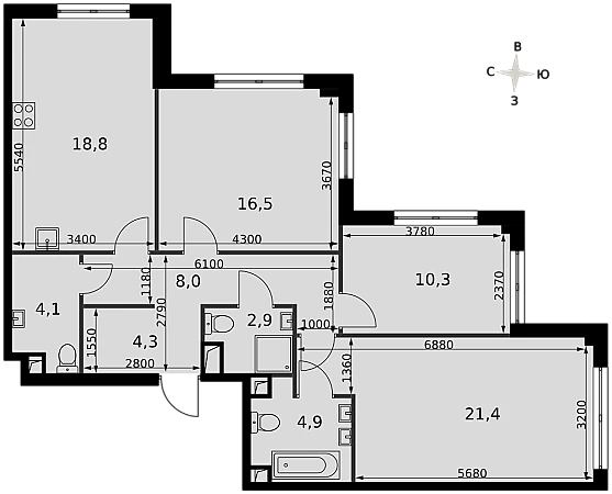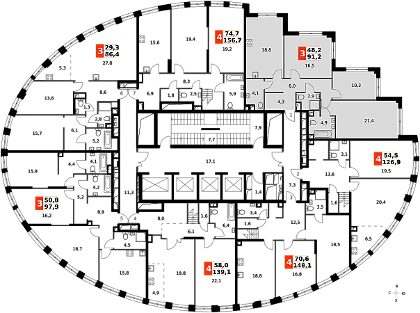 Продаётся 3-к квартира номер 526 общей площадью 91.3 кв.м. на 41-м этаже 44 этажного здания. Без отделки. Цена с учётом скидки.