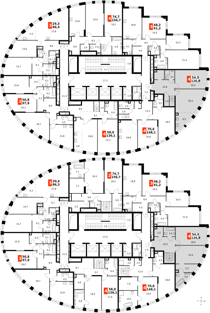 Продаётся 4-к квартира номер 537 общей площадью 126.9 кв.м. на 43-м этаже 44 этажного здания. Без отделки. Цена с учётом скидки.