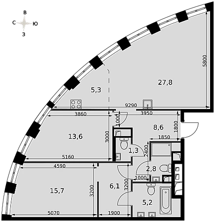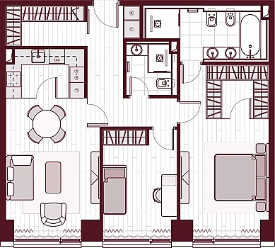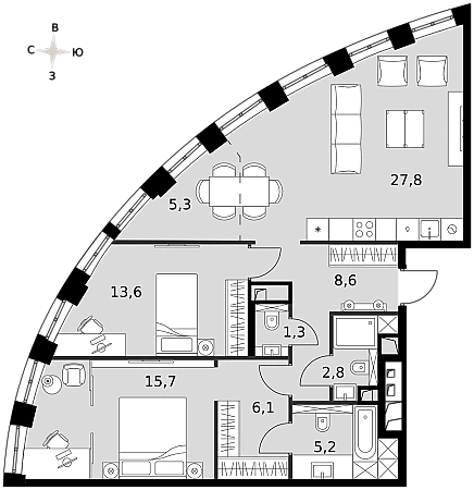 - Мастер-зона с санузлом и гардеробной. Всё для вашего комфорта и удобства, включая личный санузел и гардероб.