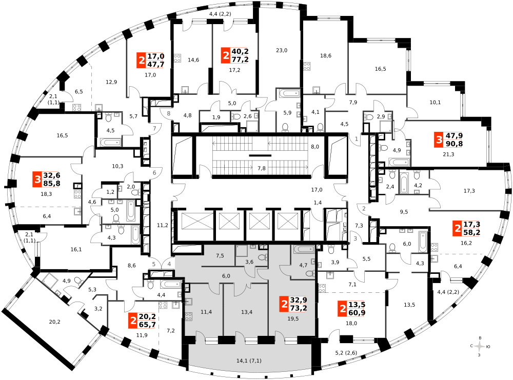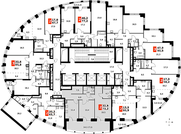 Продаётся 2-к квартира номер 366 общей площадью 73.2 кв.м. на 15-м этаже 44 этажного здания. Отделка Whitebox. Цена с учётом скидки.