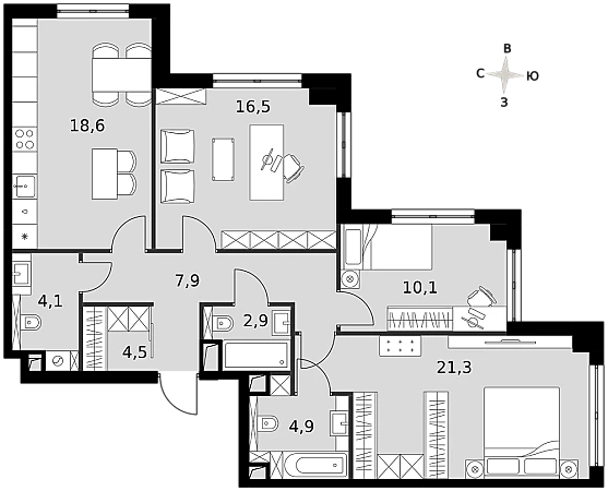 - Мастер-зона с санузлом. Уют и комфорт в одном пространстве.