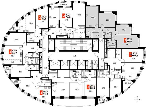 Продаётся 3-к квартира номер 431 общей площадью 90.8 кв.м. на 25-м этаже 44 этажного здания. Отделка Whitebox. Цена с учётом скидки.