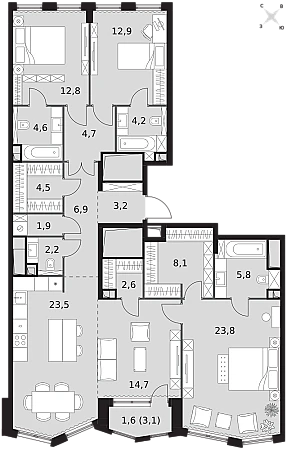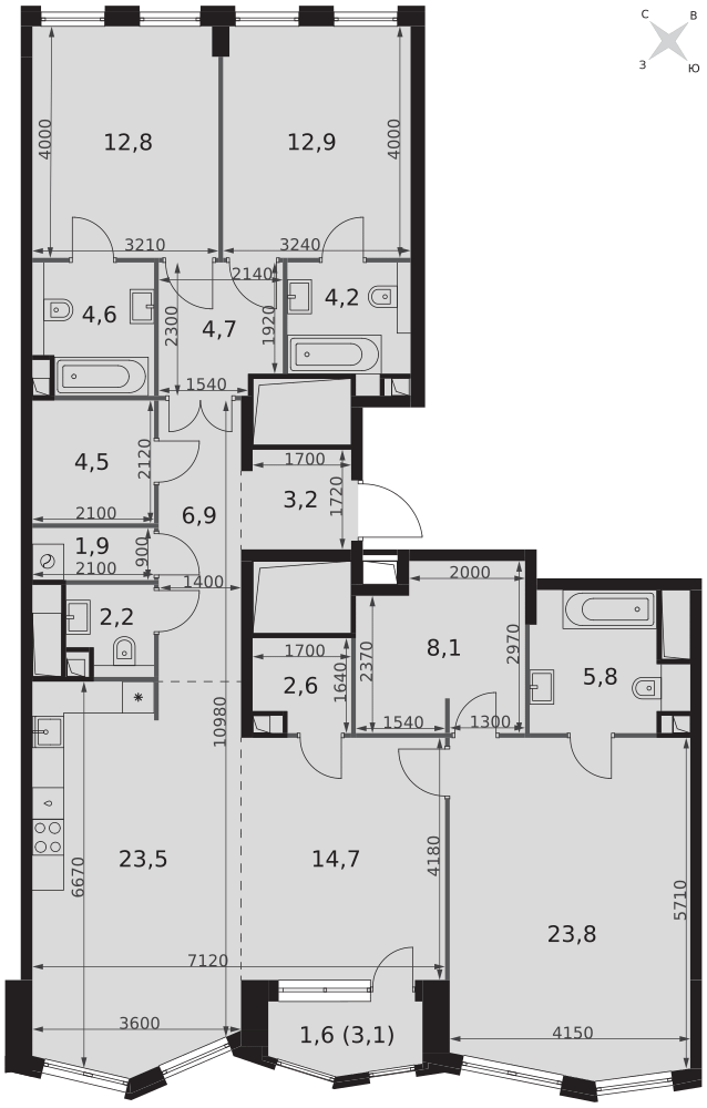 Продаётся 4-к квартира номер 294 общей площадью 138 кв.м. на 26-м этаже 26 этажного здания. Без отделки. Цена с учётом скидки.