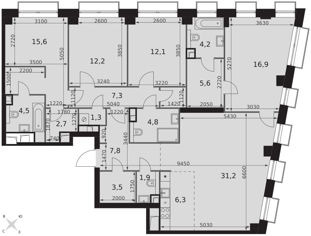 - Мастер-зона с санузлом и гардеробной. Всё для вашего комфорта и удобства, включая личный санузел и гардероб.