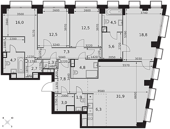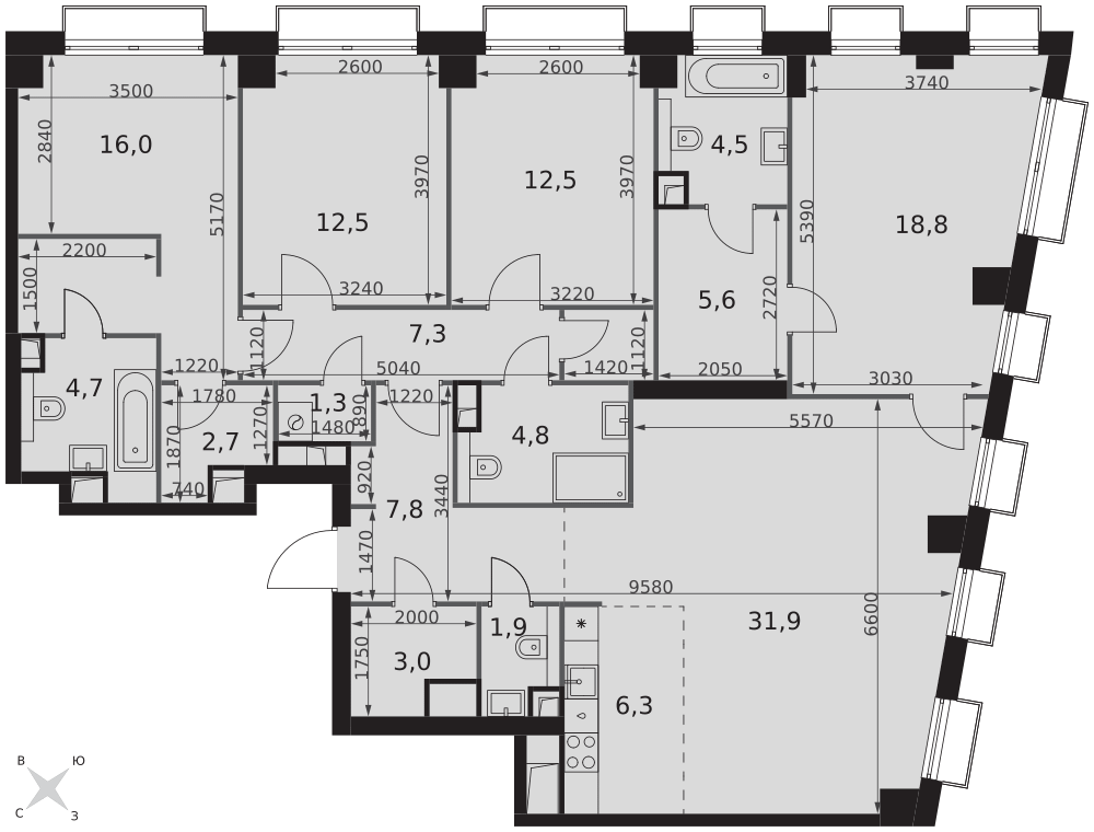 - Мастер-зона с санузлом и гардеробной. Всё для вашего комфорта и удобства, включая личный санузел и гардероб.
