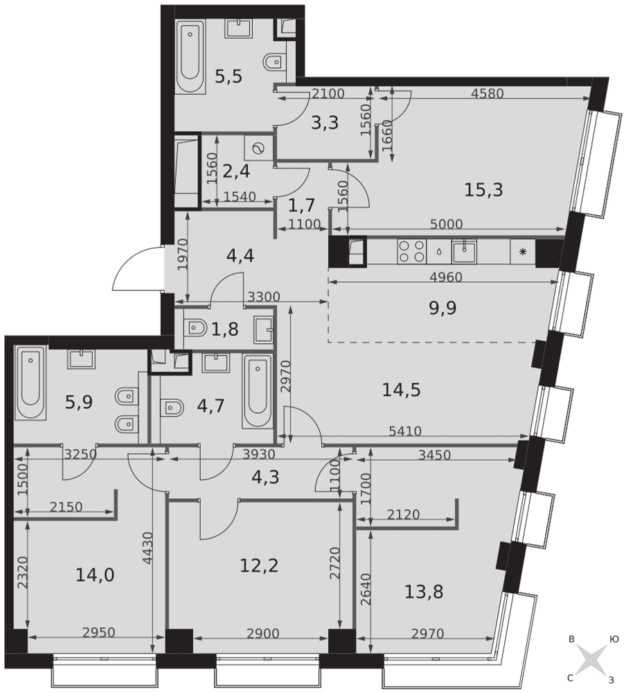 - Мастер-зона с санузлом и гардеробной. Всё для вашего комфорта и удобства, включая личный санузел и гардероб.