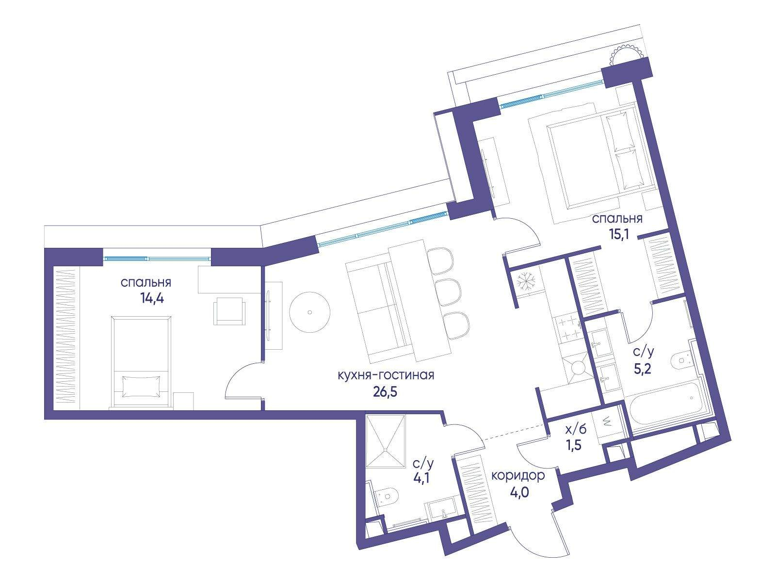 - Мастер-зона с санузлом. Уют и комфорт в одном пространстве.