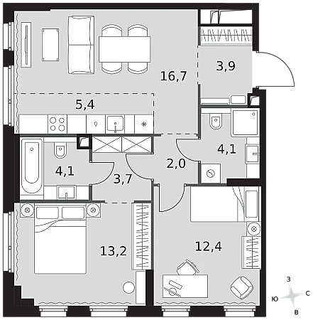 - Евроформат - просторное и удобное жилье с отличной планировкой.