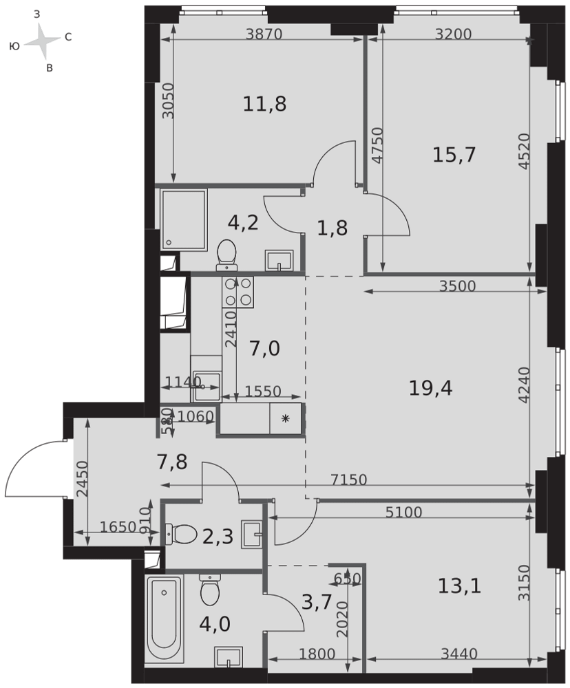 - Мастер-зона с санузлом и гардеробной. Всё для вашего комфорта и удобства, включая личный санузел и гардероб.