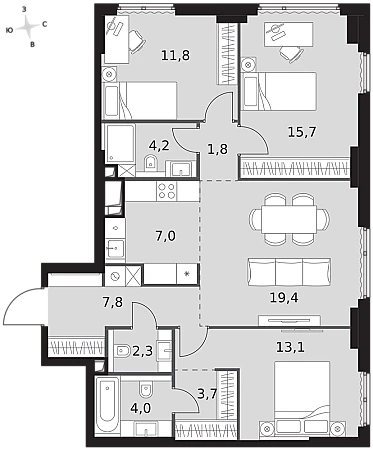 - Гибкая планировка - создайте пространство по своему вкусу.