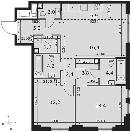 - Мастер-зона с санузлом и гардеробной. Всё для вашего комфорта и удобства, включая личный санузел и гардероб.