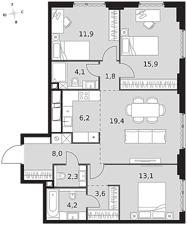 - Гибкая планировка - создайте пространство по своему вкусу.
