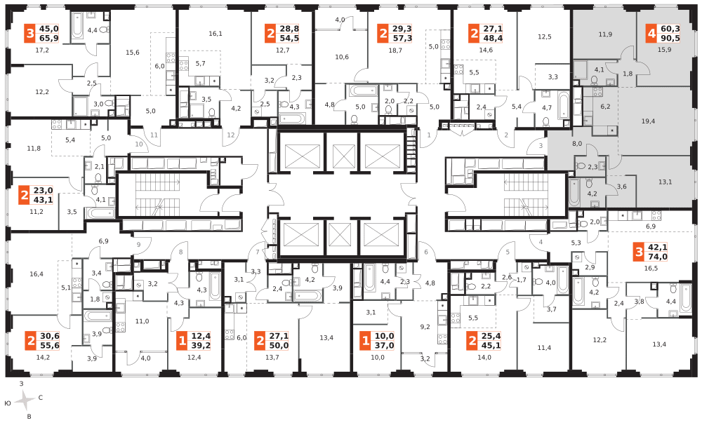 Продаётся 4-к квартира номер 825 общей площадью 90.5 кв.м. на 33-м этаже 42 этажного здания. Без отделки. Цена с учётом скидки.