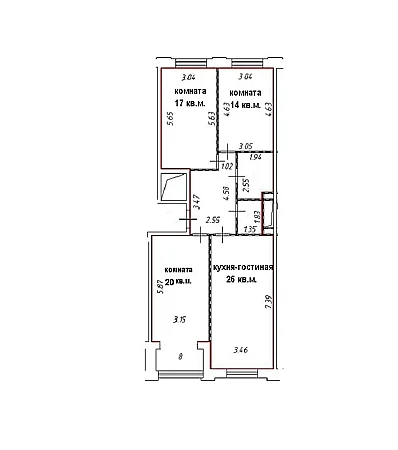 - дополнительная спальня/детская – 17 кв.м.,