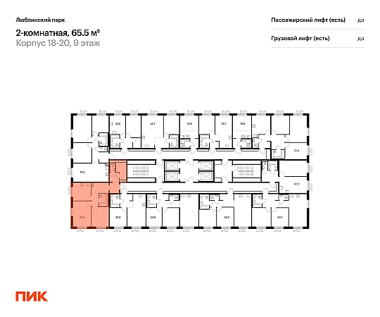 Продаётся 2-комн.квартира площадью 65.50 кв.м на 13 этаже 25 этажного дома (Корпус 18-20, секция 1) проекта ПИК Люблинский парк. Светлый просторный подъезд на уровне земли, функциональная планировка, большие окна, с отделкой.