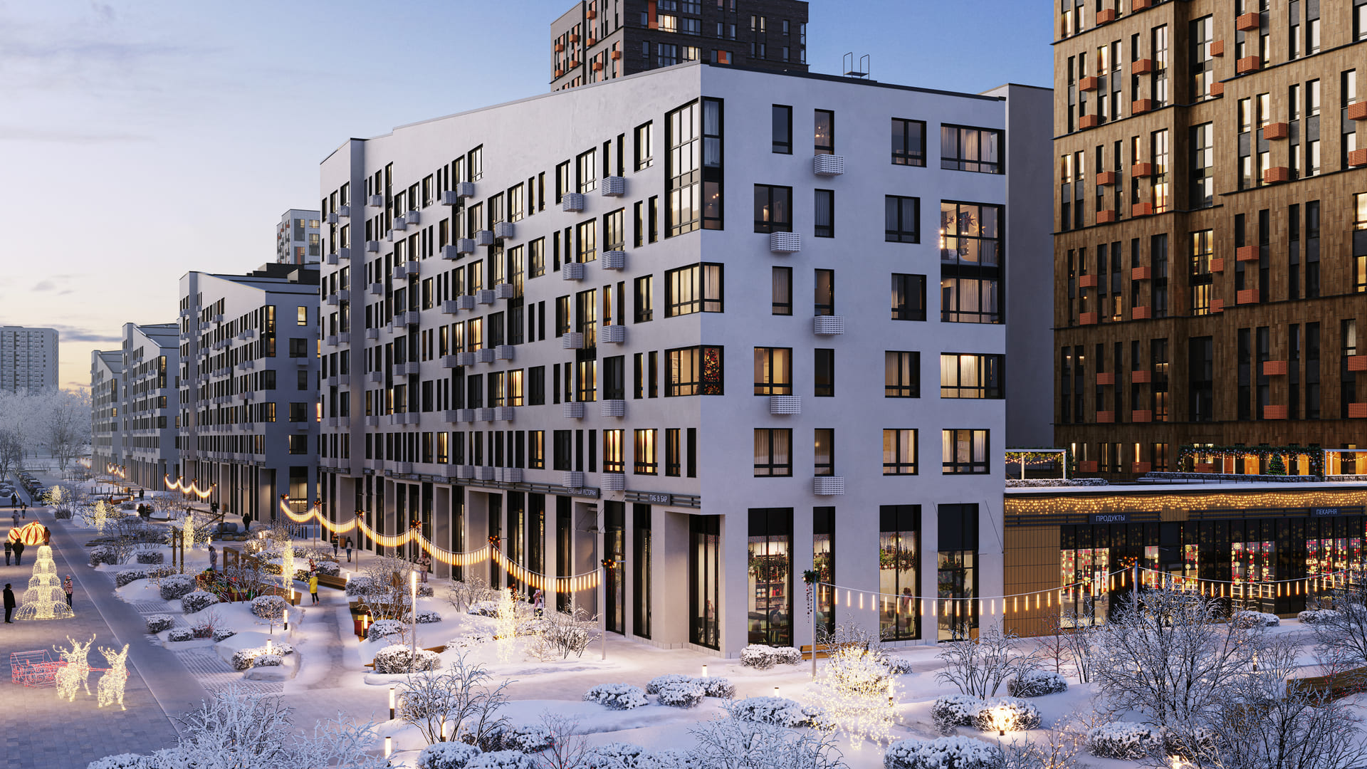 Монолитный новый дом с паркингом. Охраняемая территория. Во входных группах предусмотрены помещения для консьержа и колясочные. На первых этажах магазины, пекарня, стоматология, салон красоты. На придомовой территории размещены детские и игровые площадки, площадки для отдыха и спорта. Озелененная придомовая территория, высажены деревья, кустарники, разбиты газоны и цветники.