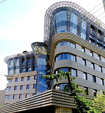 ЖК Стольник - клубный дом премиум-класса на 18 квартир, построенный в уютном Малом Левшинском переулке в районе Остоженки. Фасад выдержан в лаконичном стиле хай-тек с панорамными окнами на верхних этажах, стеклянным атриумом-колонной в центре и ажурным карнизом, сплетенным из алюминиевых труб.