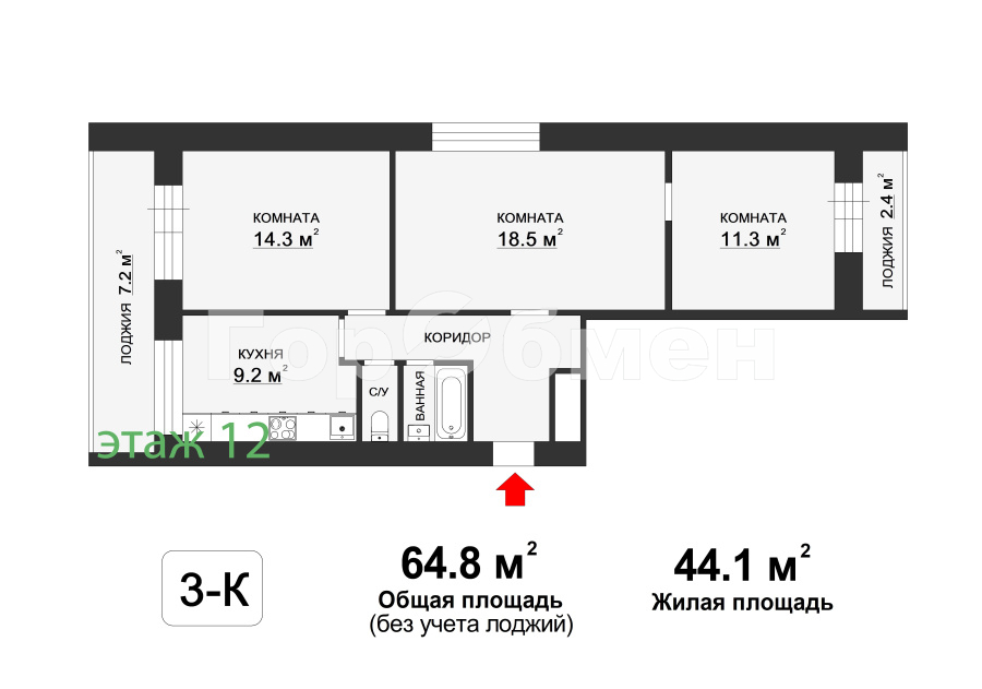 Купить 2к квартиру 63 м² в ЖК Римский
