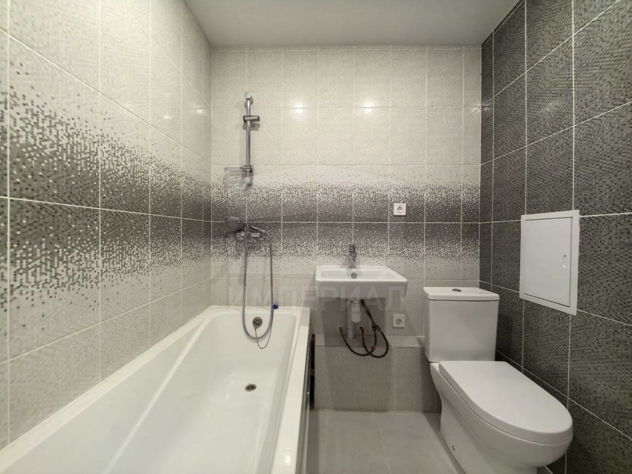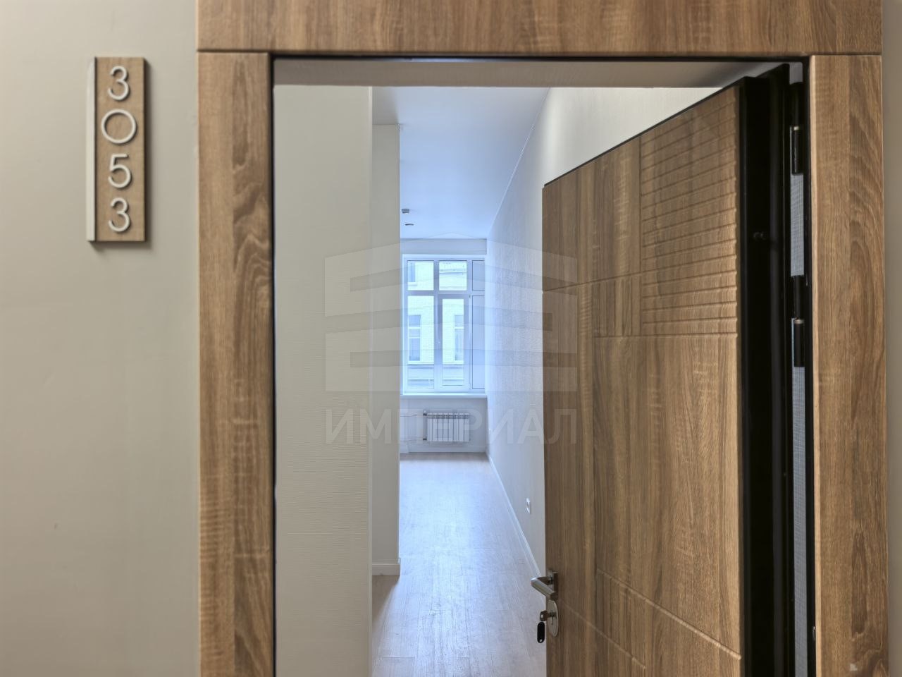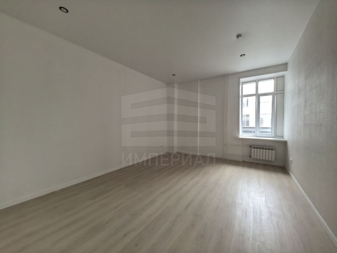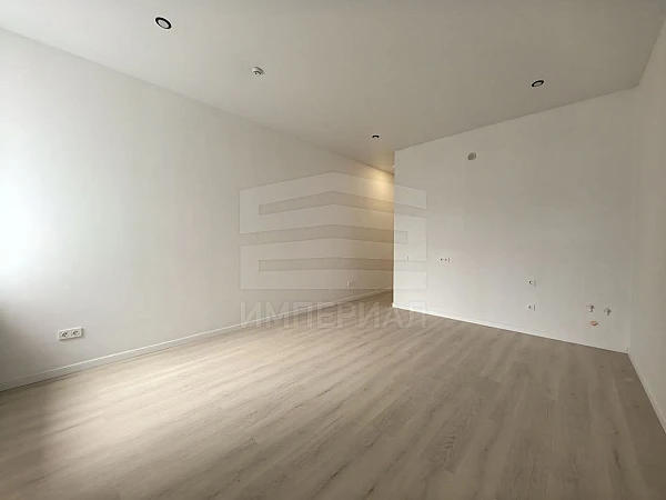 На стенах поклеены обои под покраску, на полу постелен ламинат с плинтусами и откосами. Есть вытяжная вентиляция в санузле и на кухне, выходы хв/гв, место под раковину на кухне. Кроме того, в помещениях уже есть выключатели освещения, розетки для бытовой техники и роутера, а также сделаны закладные для оптоволокна для интернета.