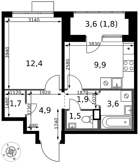 Общая площадь квартиры 57.1 м2. Сделано ПРОДУМАННОЕ ЗОНИРОВАНИЕ пространства. УЮТНАЯ кухня 6 м2.В кухне установлен гарнитур со всей необходимой бытовой техникой (газовая плита с духовкой, холодильник...). Спальня 1 - 10 м2. Большая комната разделена на гостиную и кабинет общей площадью 18 м2 с выходом на застеклённый балкон. Спальня 2 - 14 м2 с выходом на застеклённый балкон. Просторный совмещенный санузел