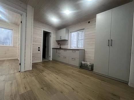 Продается земельный участок с домом в СНТ Жаворонки-Север в Одинцовском районе в 20 км от МКАД по Можайскому ш. Удобная транспортная доступность: круглогодичный асфальтированный въезд под шлагбаум прямо с Можайского шоссе, перед поселком остановка регулярных автобусов и маршруток до г. Одинцово (11 км), до станции Жаворонки (3 км), откуда полчаса пути на электричке до ст. метро Кунцевская в Москве. Рядом расположен продуктовый магазин, в 4 км гипермаркет Глобус. В поселке постоянно проживают жители, действует ночное освещение улиц. Дом в жилом состоянии, приспособлен для круглогодичного проживания. Три жилых комнаты 15, 14 и 9 кв.м., кухня 10 кв.м. с гарнитуром и электрической плитой, 2 санузла, в одном из них установлена джакузи и оборудован теплый пол. В доме постоянное водоснабжение насосом из собственного колодца на участке, горячая вода из установленного накопительного бойлера на 80 литров. Канализация – септик. Выделенная эл. мощность 15 кВт. Газ возможен в перспективе. Отопление конвекторами, так же оборудована стильная чугунная дровяная печь. Участок ровный 4,48 сотки, поставлен на кадастровый учет, производилось межевание, вид разрешенного использования: для огородничества и садоводства. Въезд на участок возможен с двух сторон, во дворе оборудована крытая стоянка на 2 а/м. Соседи спокойные. В 50 метрах начинается лесной массив с хвойными деревьями. Собственность с 2013 года, без обременений. Один взрослый собственник, полная стоимость в ДКП.