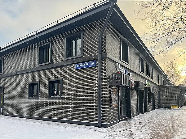 Отделка фасадов выполнена панелями с имитацией клинкерного кирпича. Дополнительно на территории организованы зоны отдыха на свежем воздухе, также дополнительно имеется возможность для организации летних веранд и кафе.