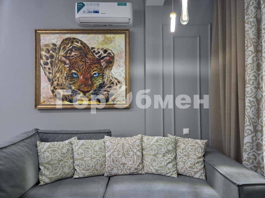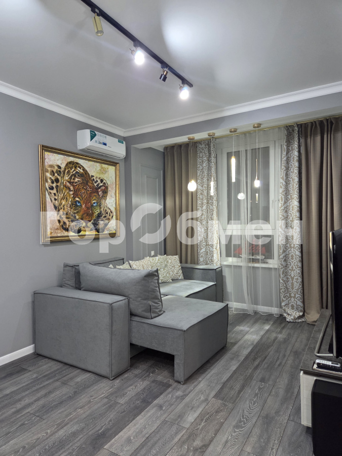Квартира с удобной функциональной планировкой, ремонт в современном стиле: напольное покрытие – керамогранит в мокрых зонах, ламинат - в жилых помещениях, стены окрашены краской, окна – пластиковые стеклопакеты, из окна вид на частный сектор и сады дачников, установлен кондиционер, высота потолков 2.75 м.