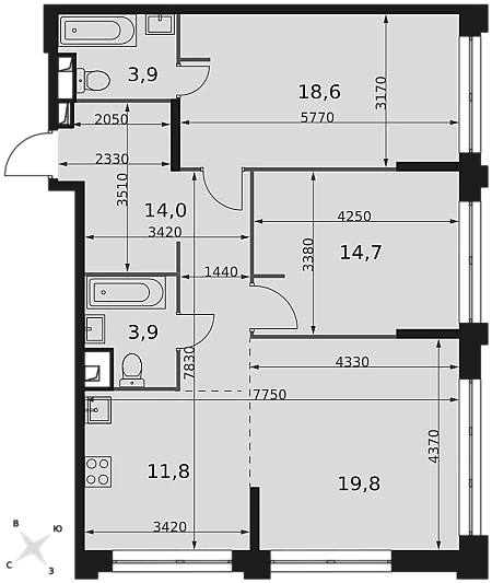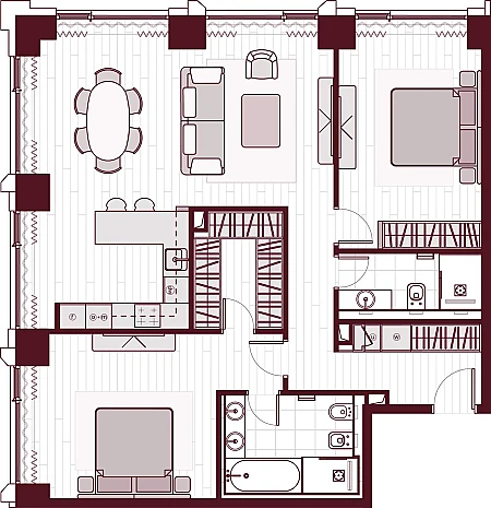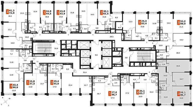 Можно дополнить 2 машиноместами и кладовкой (находятся на -1 этаже, рядом с лифтом) за отдельную плату.