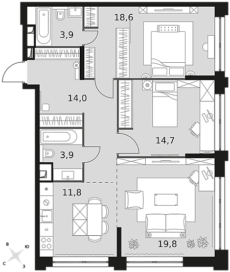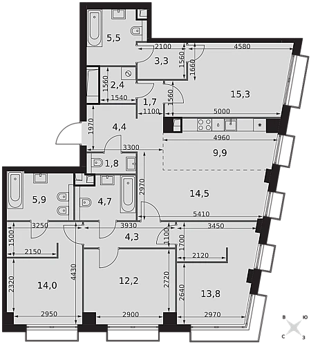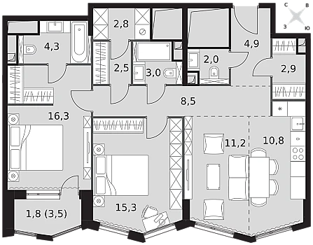 Купить 3к квартиру 105 м² в ЖК Настоящее