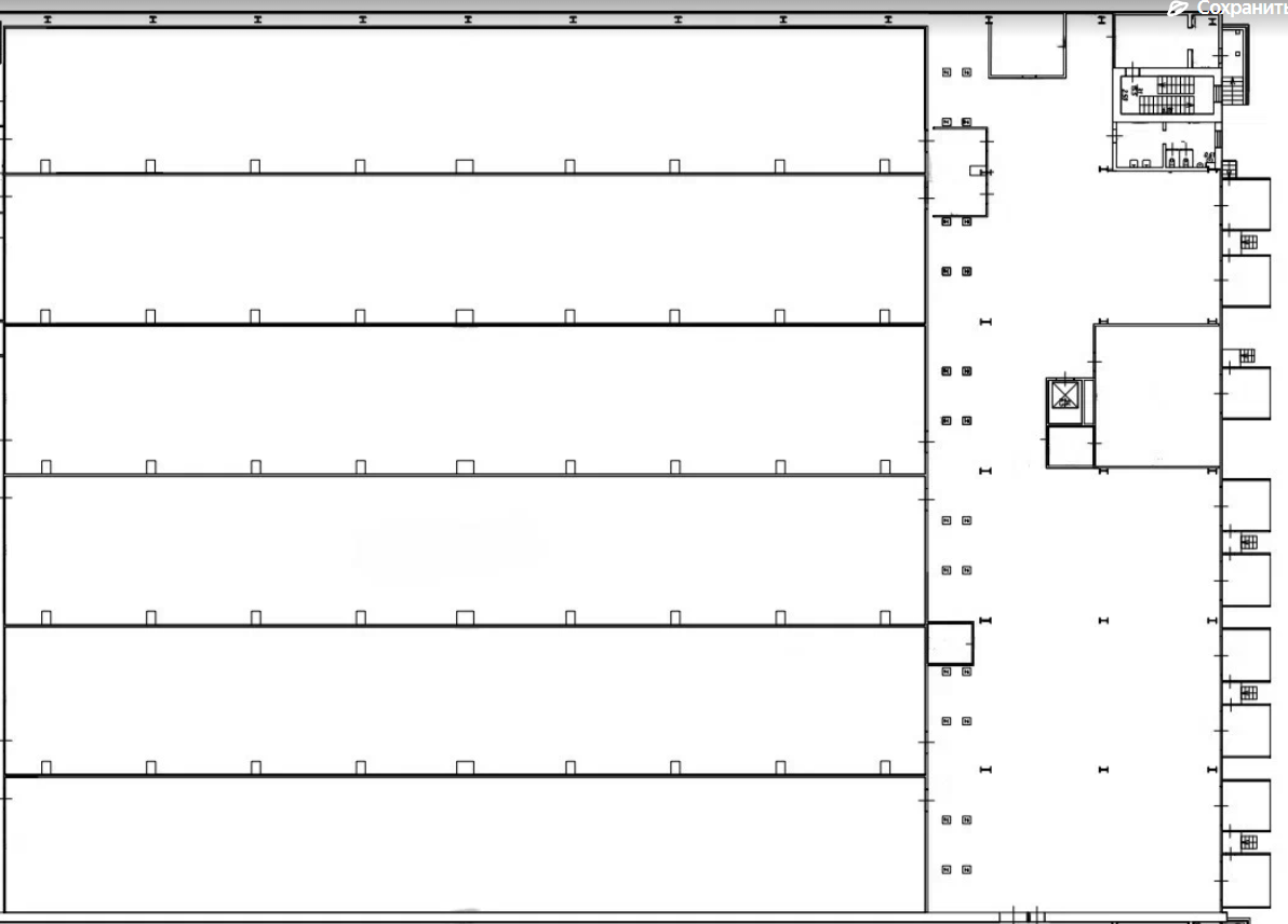 Общая зона 1000 м2 погрузки-разгрузки с большим количеством ворот: