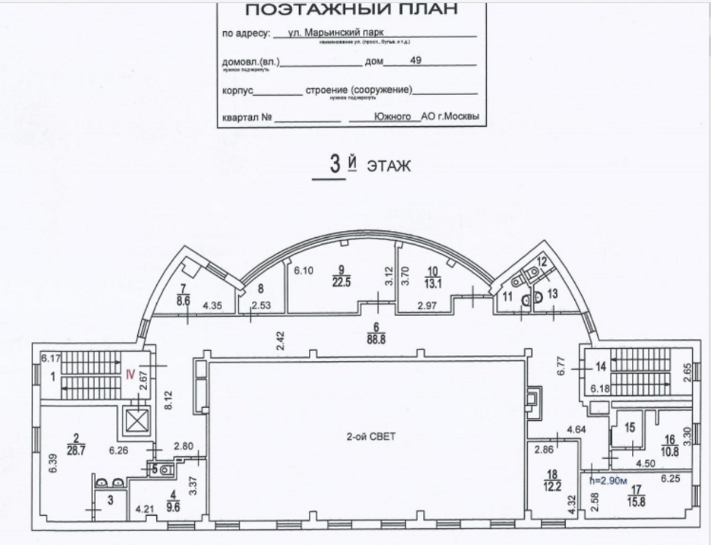 ==ЛОТ 222697 == ОТ СОБСТВЕННИКА, БЕЗ КОМИССИИ. Сдается помещение свободного назначения 263 м2 на третьем этаже.