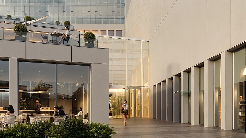 - Пешеходные маршруты, повторяющие геометрию террас бизнес-центра;