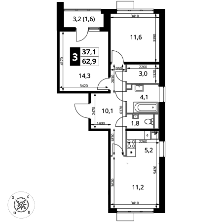 Одним из преимуществ данной квартиры является наличие в планировочном решении комнат правильной формы. Не во всех квартирах этого комплекса есть такие возможности, поскольку в большинстве помещений ЖК геометрическая нарезка площадей имеет неправильную скошенную конфигурацию.