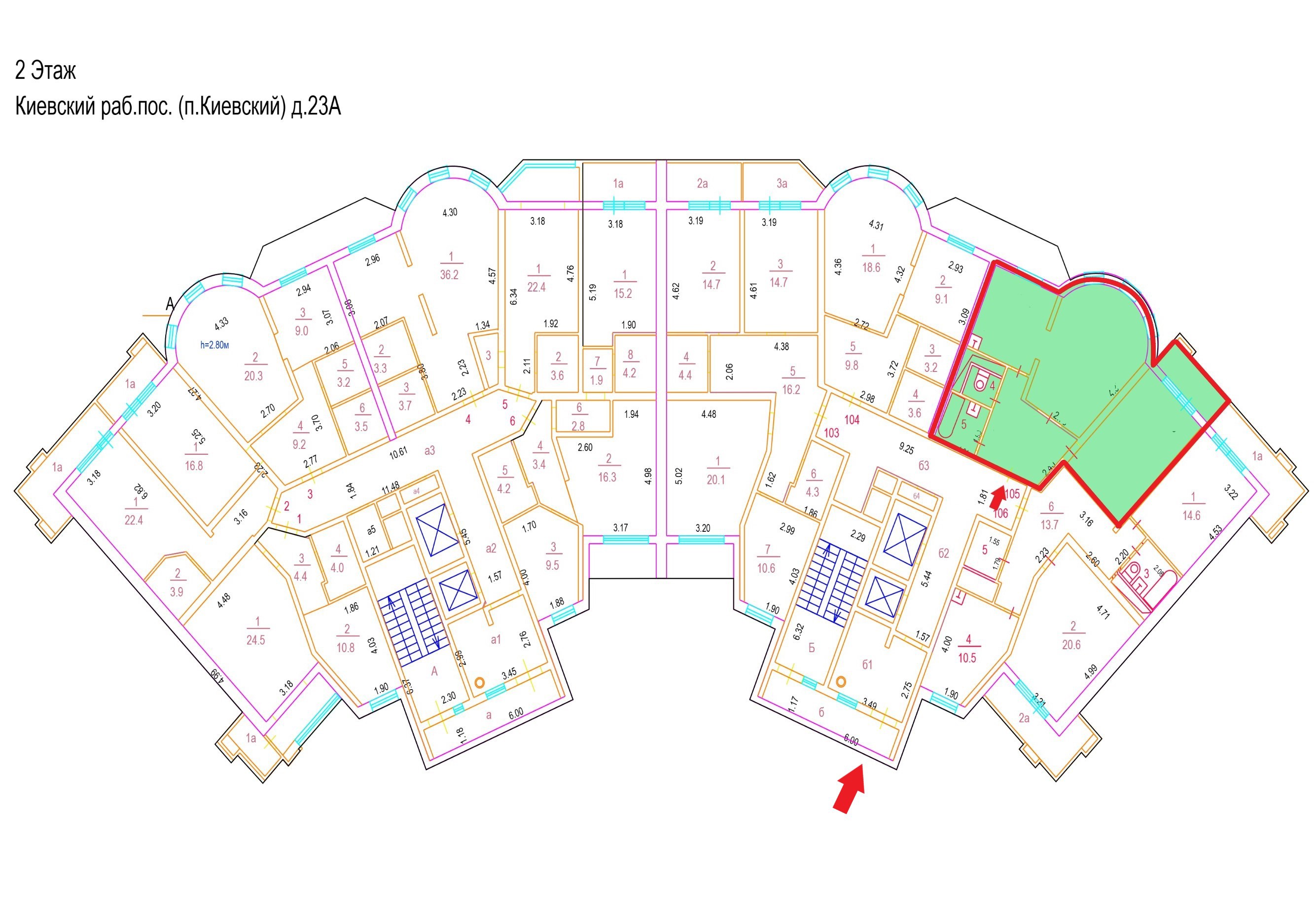 Высота потолков: 2,80 - 2,80 м