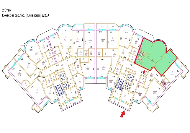 Квартира, 2-комн., 59,6 м², ТАО | ТАО, Киевский, поселение Киевский, рабочий посёлок Киевский, д. 23А, Этаж № 2,кв. 105