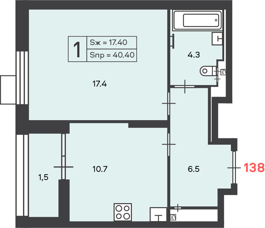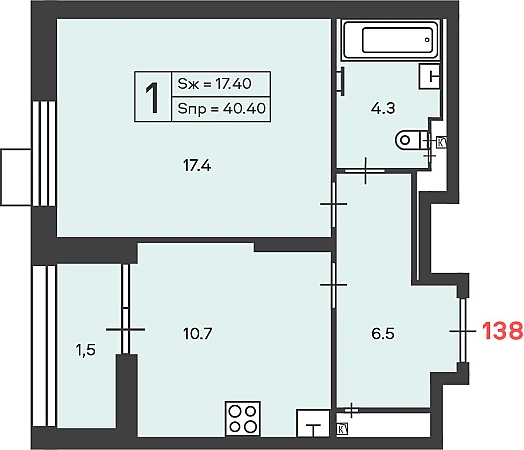 Площадь жилая: 17,4 м²