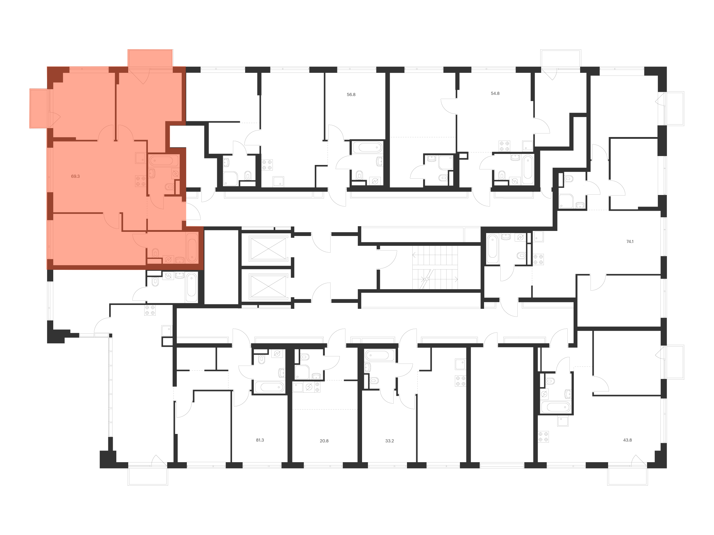 · Квартиры с различными балконами, террасами, окнами в пол.