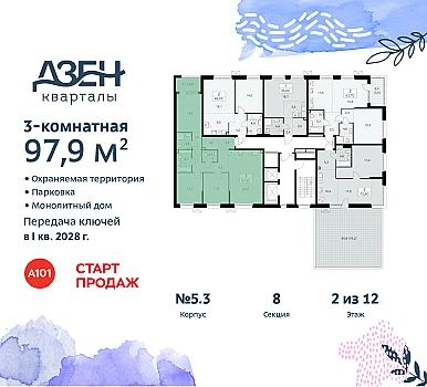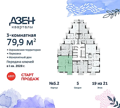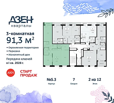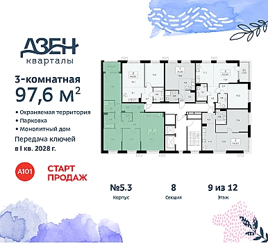 Продаётся 3-комн.квартира площадью 82.50 кв.м на 9 этаже 9 этажного дома (Корпус 6.1, секция 3) проекта ПИК Волжский парк. Светлый просторный подъезд на уровне земли, функциональная планировка, большие окна, с отделкой.