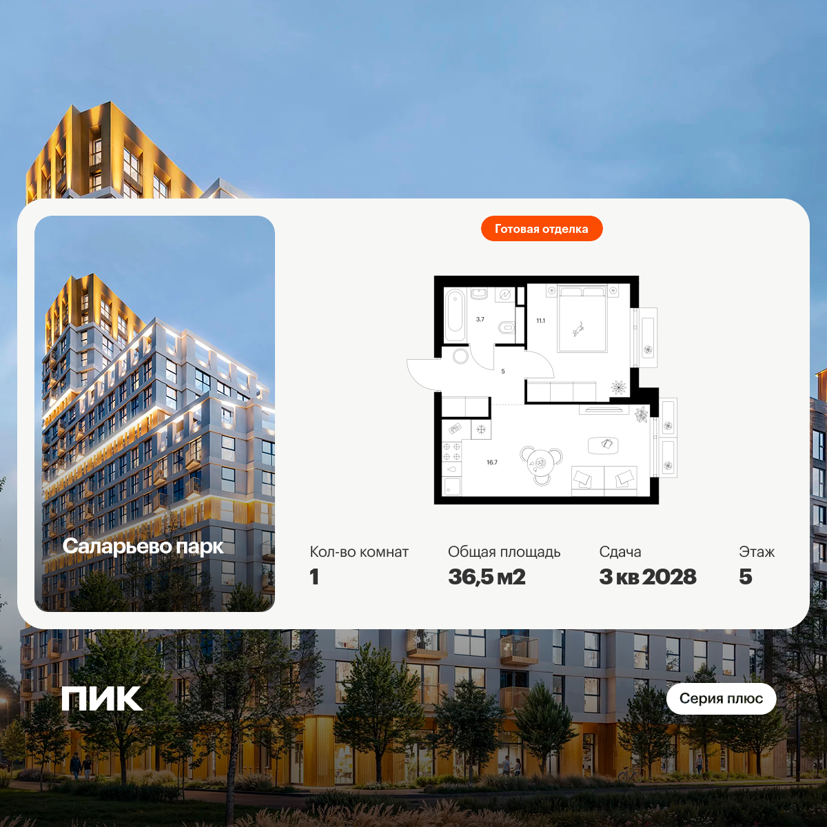 Купить 1к квартиру 35 м² в ЖК Митинский лес