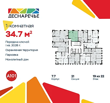 Купить 1к квартиру 32 м² в ЖК Саларьево парк