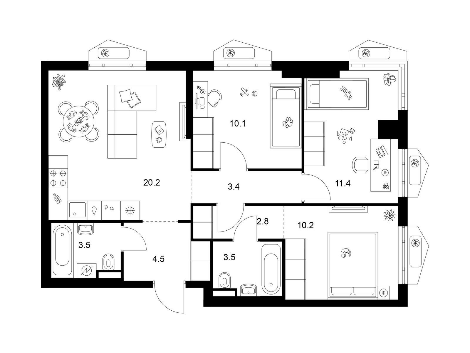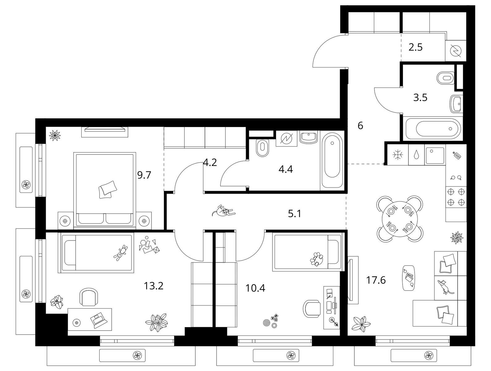 В «Мичуринском парке» широкий выбор планировок для разных сценариев жизни. Мы предусмотрели мастер-спальни с собственной ванной и местом для гардероба. Есть планировки с просторной кухней-гостиной, постирочной и дополнительным санузлом. В проекте можно найти уникальные форматы квартир с эркерами, окнами в пол, одним или двумя балконами в квартире. Артикул - 956210