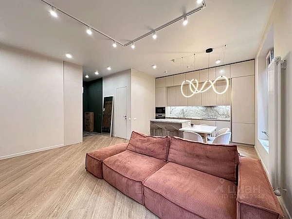 Общая площадь квартиры составляет 81, 5 кв. м, просторная кухня-гостиная 30 кв. м.